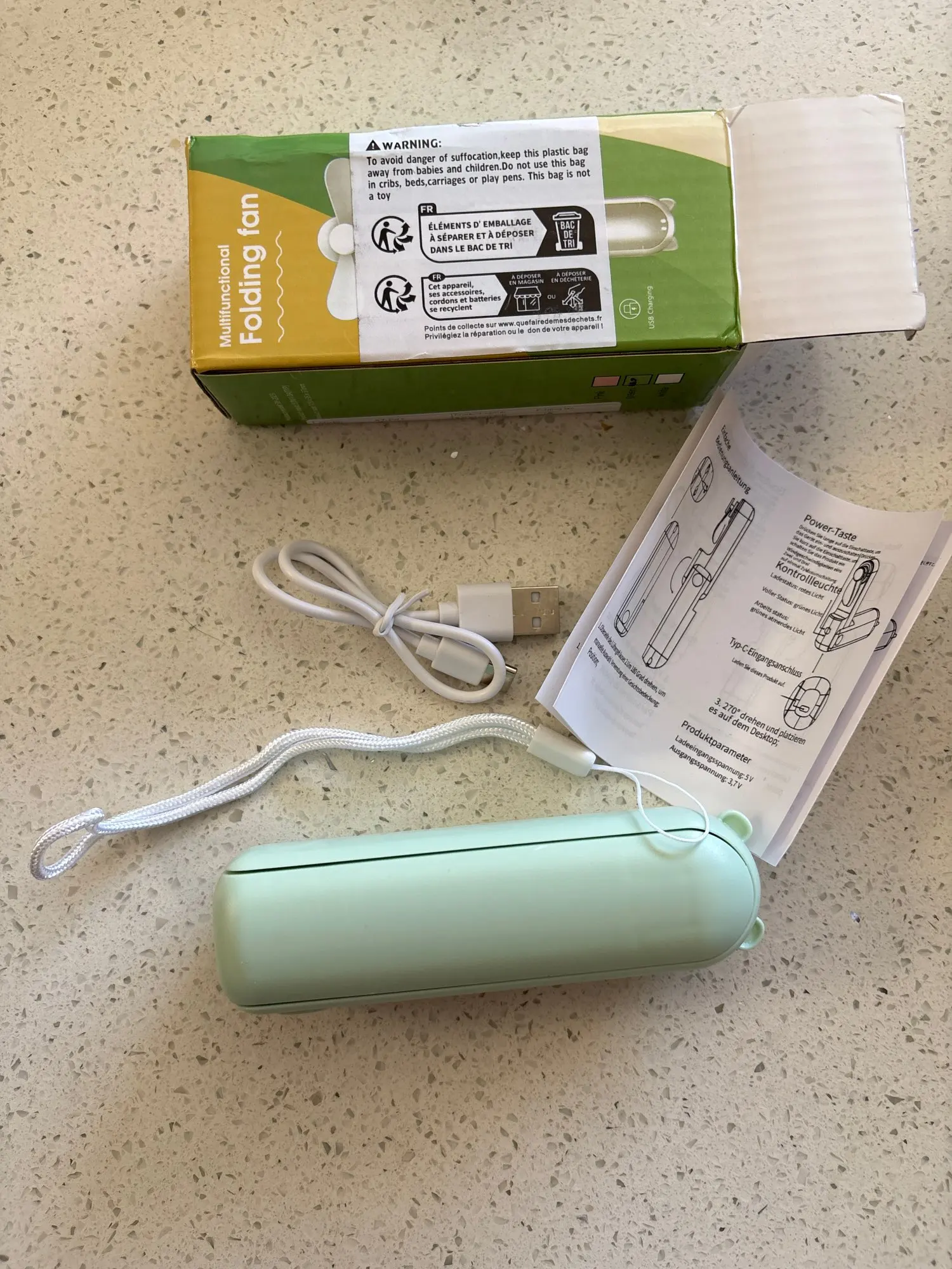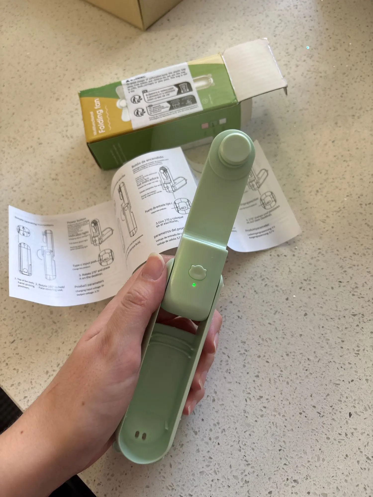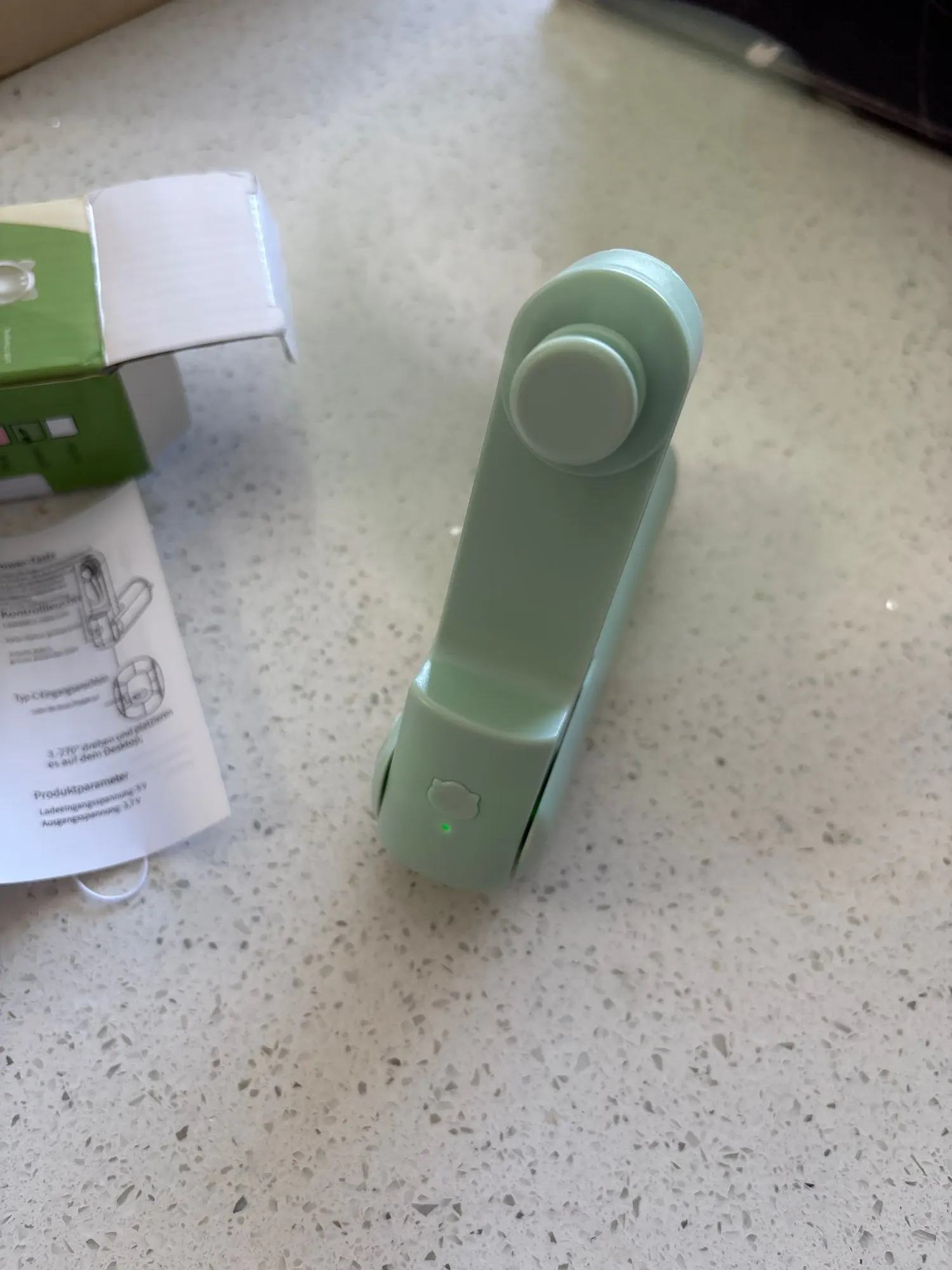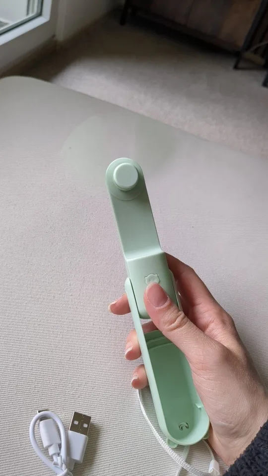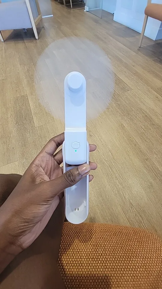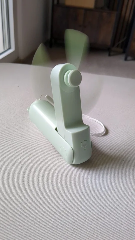 dieser kleine Hand-Ventilator ist in 3 Geschwindigkeits Stufen einstellbar. Man kann ihn einfach halten oder auf dem Tisch platzieren . Ich bin zufrieden , achja und aufladbar über Kabel .