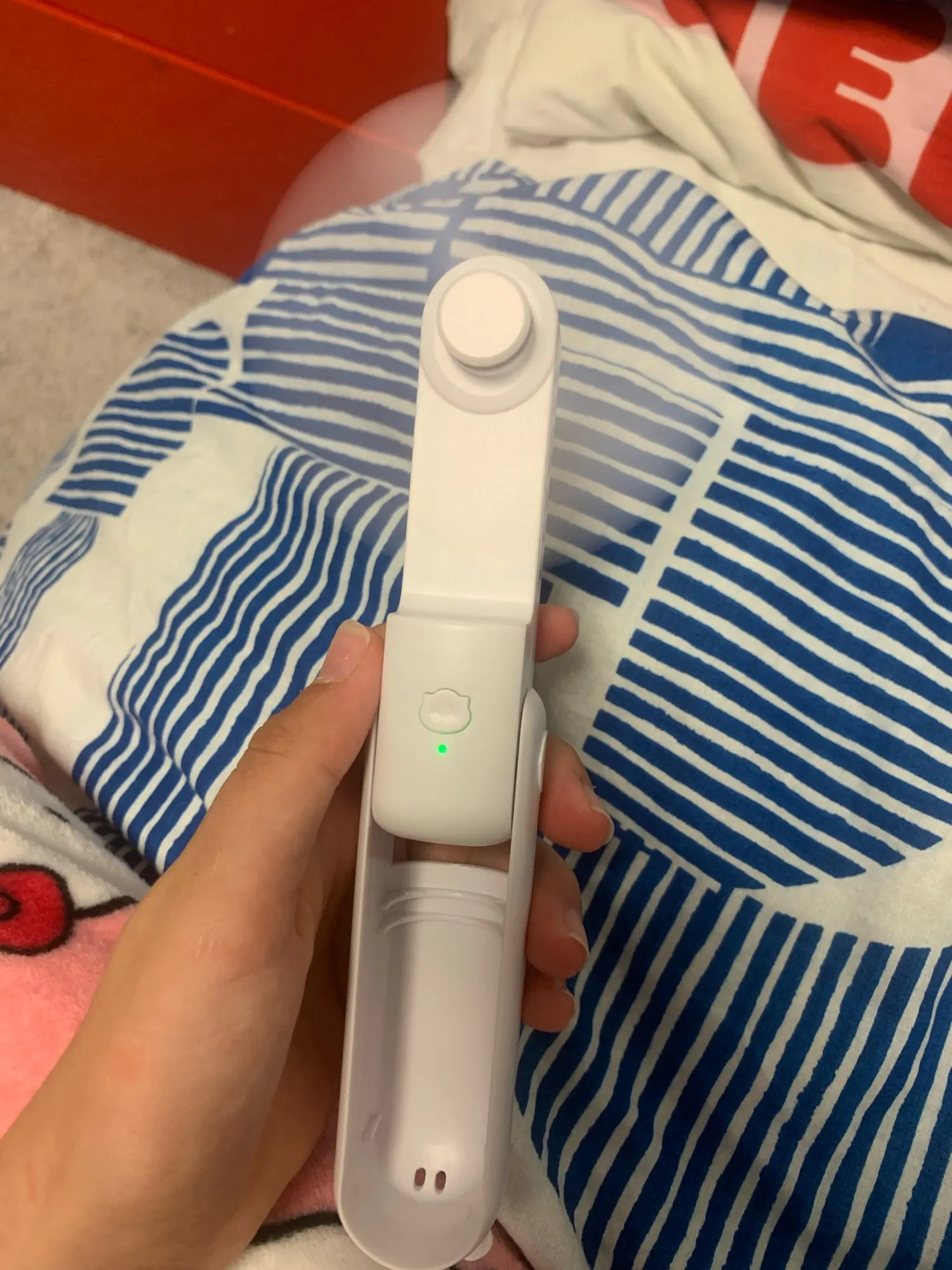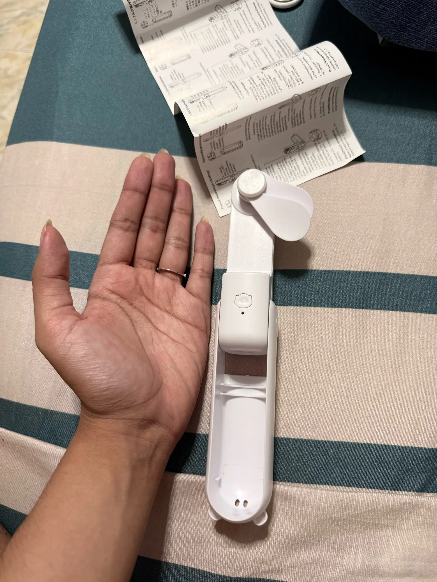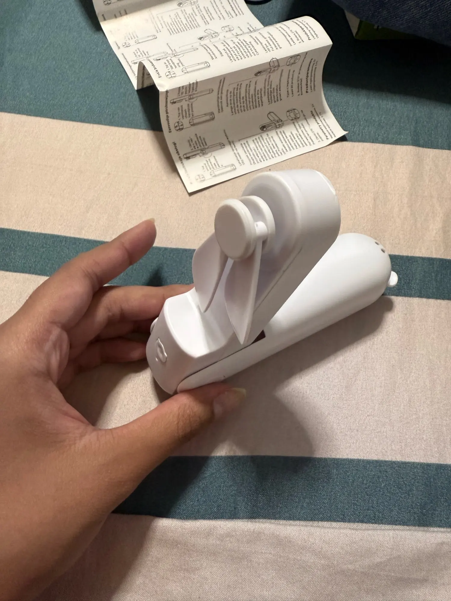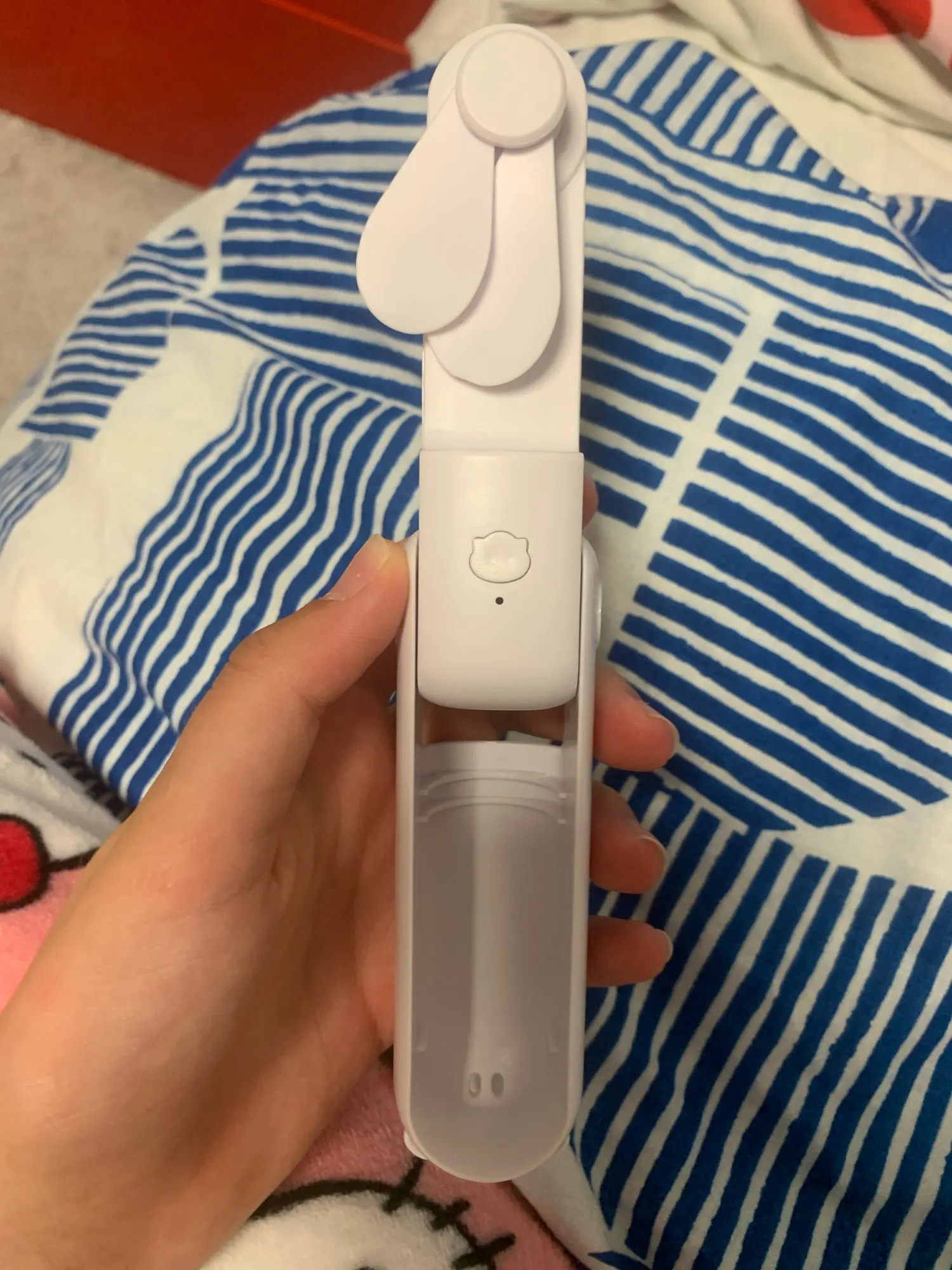dieser kleine Hand-Ventilator ist in 3 Geschwindigkeits Stufen einstellbar. Man kann ihn einfach halten oder auf dem Tisch platzieren . Ich bin zufrieden , achja und aufladbar über Kabel .